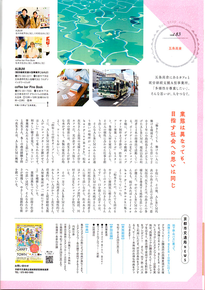 1ページに渡り、「coffeebar PineBook」さんとの交流について書かれています。